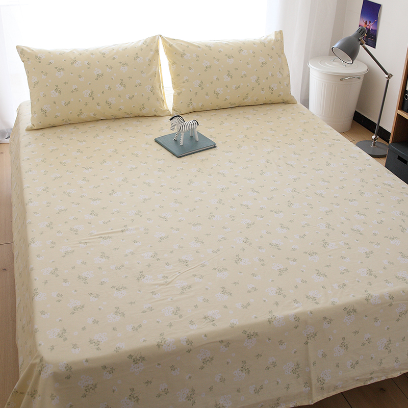 花月纯棉床单单件田园碎花黄色可爱宿舍1.2m1.8米床上1.5ins被单
