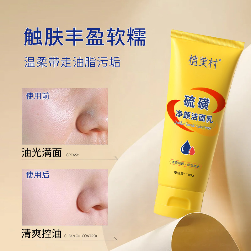 ZMC/植美村硫磺净颜洁面乳控油润肤温和清洁除螨祛痘改善肌肤官方