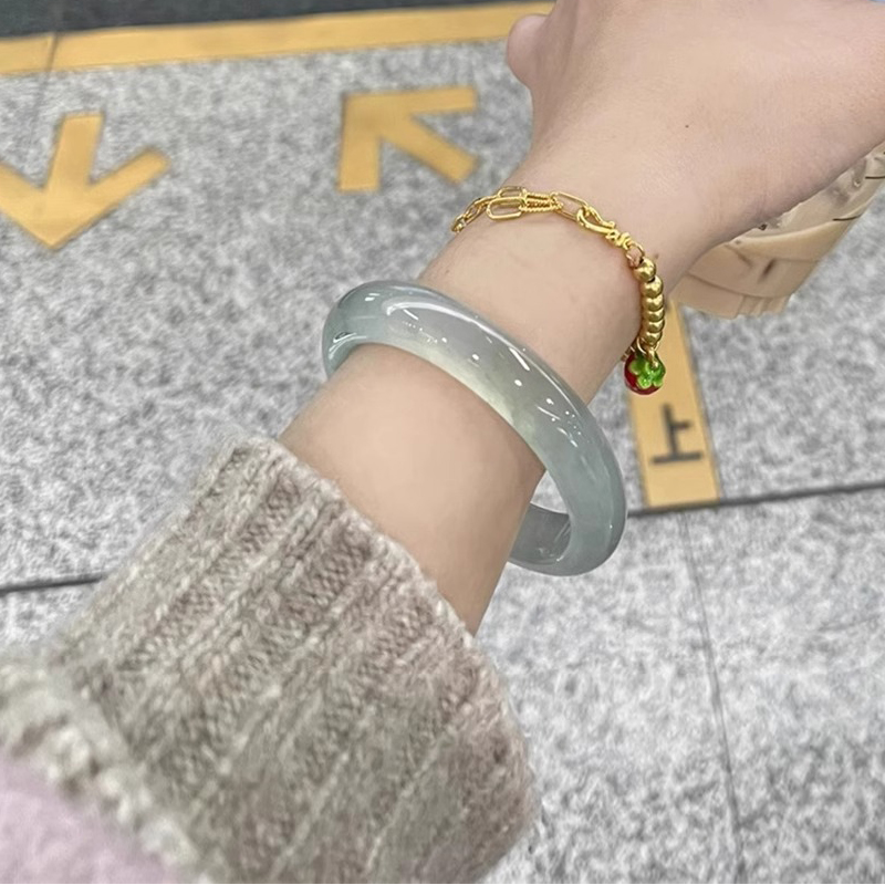 仟喜梵“月微澜”翡翠玉髓平替冰种石英岩真玉手镯子女款正品处理