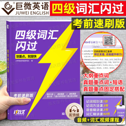 四级词汇闪过速刷版2026年大学英语四级词汇巨微默写本26真题四六级考试cet4单词书背诵默写大纲巧记高频4500词划重点学习小本2026