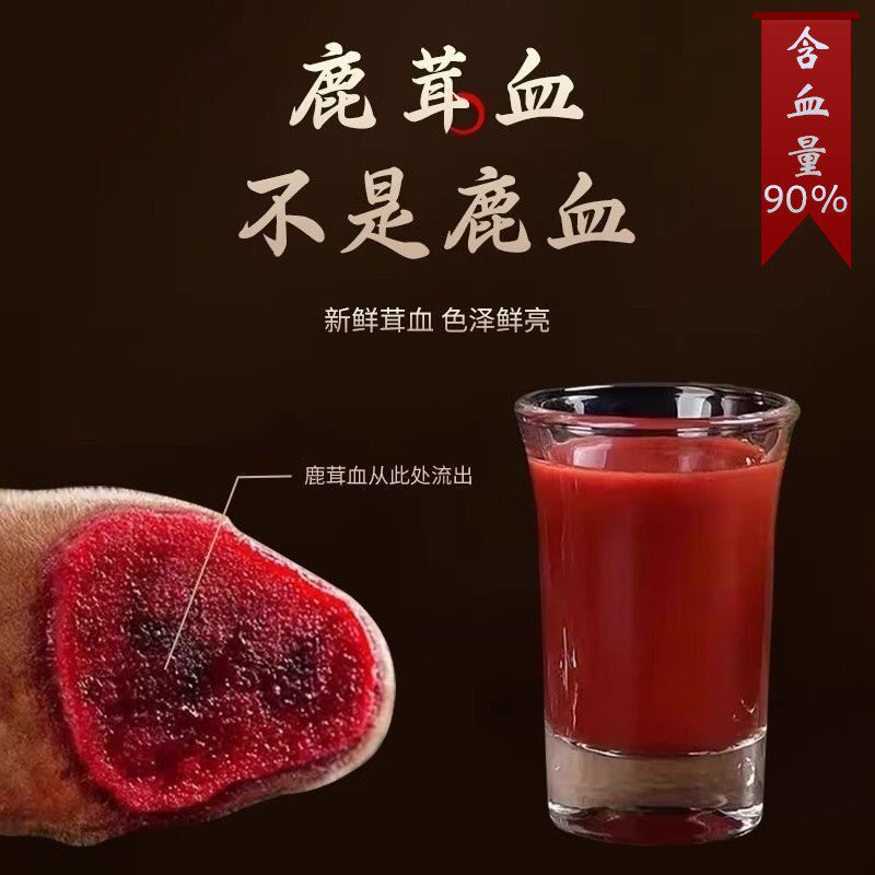 正宗吉林散养梅花鹿茸血新鲜90%含血量男士滋补养生500ml泡酒专用