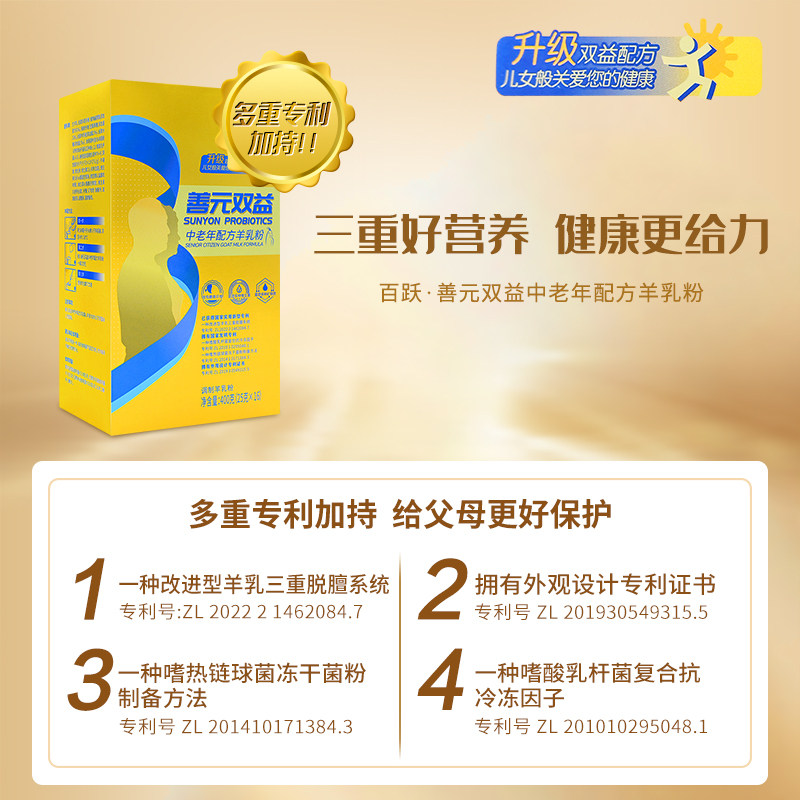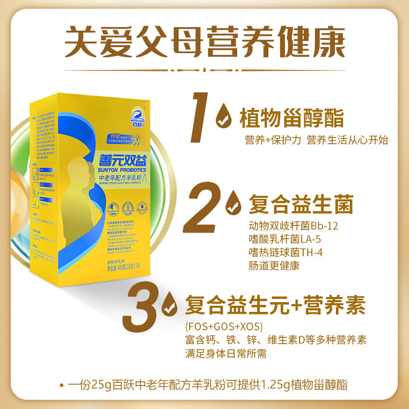 百跃善元双益中老年成人羊奶粉益生菌钙铁锌400g送父母春节礼品