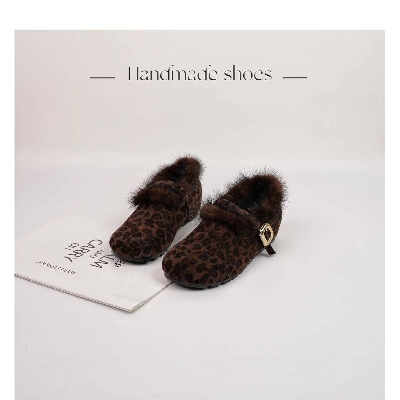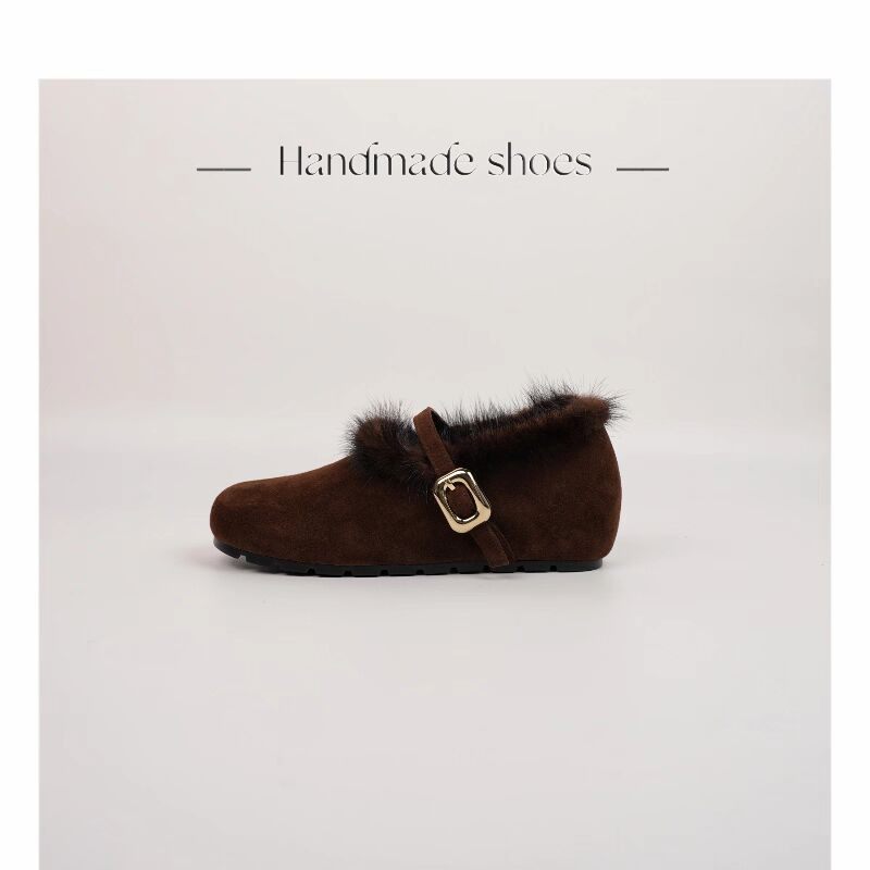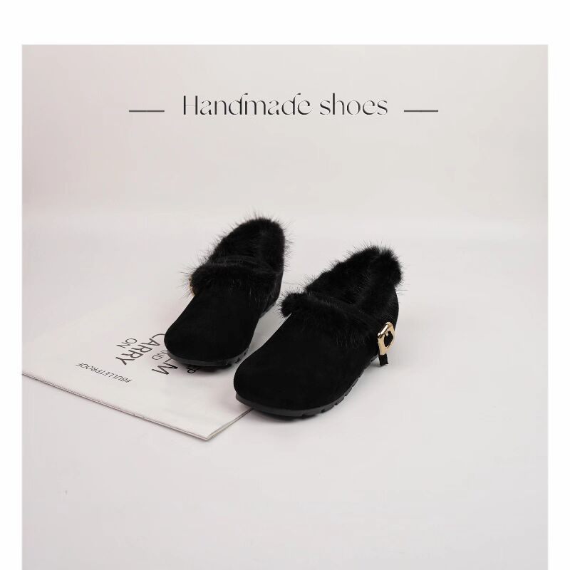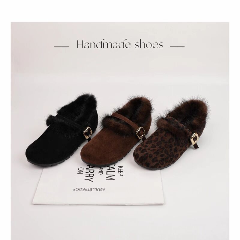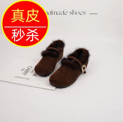 专柜2025年新款冬韩版真皮毛毛乐福鞋女圆头低跟豆豆鞋舒适懒人鞋