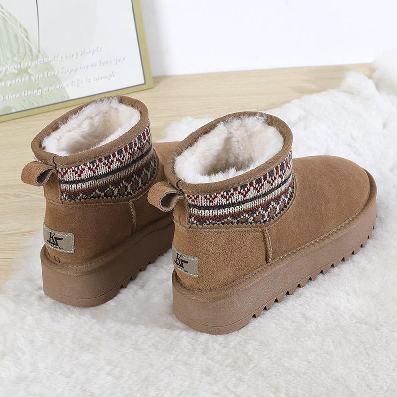 全羊毛雪地靴女2024新款冬季民族风厚底加绒皮毛一体防滑短筒棉鞋