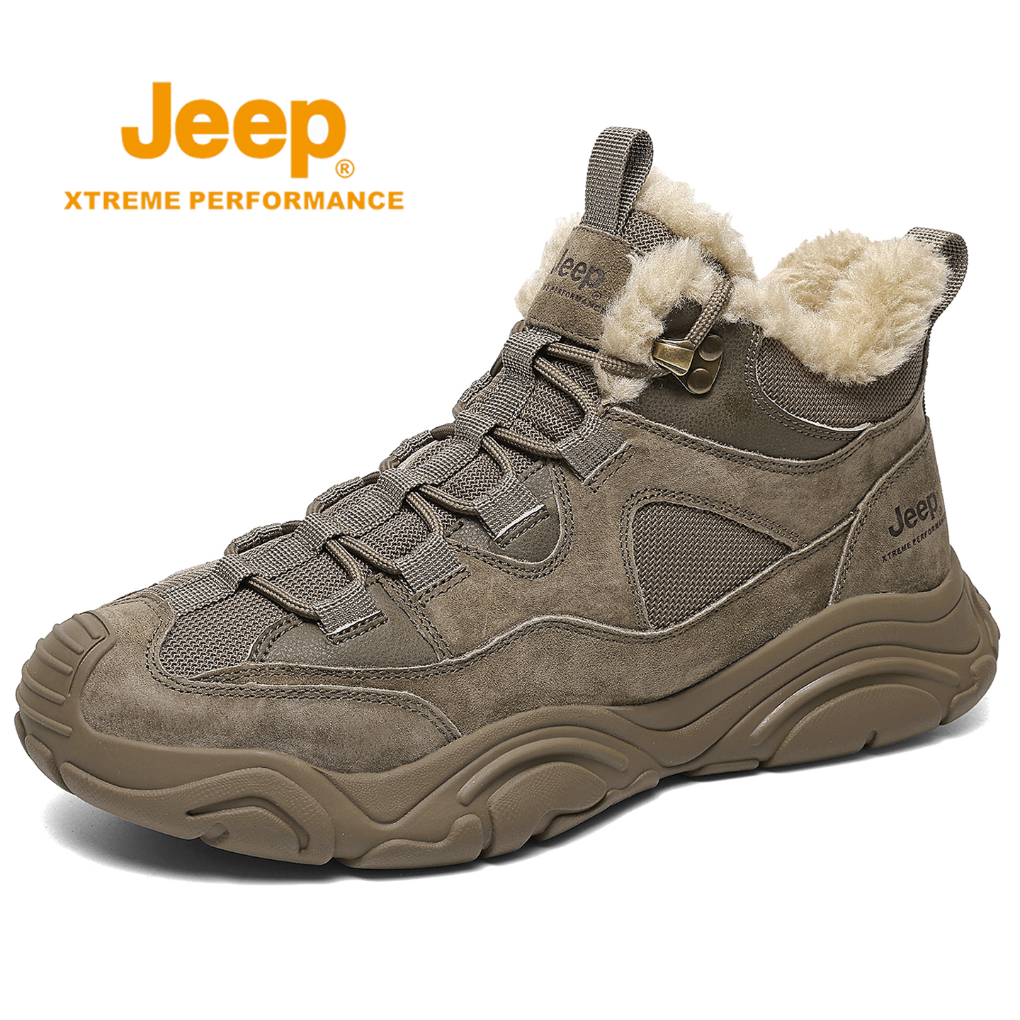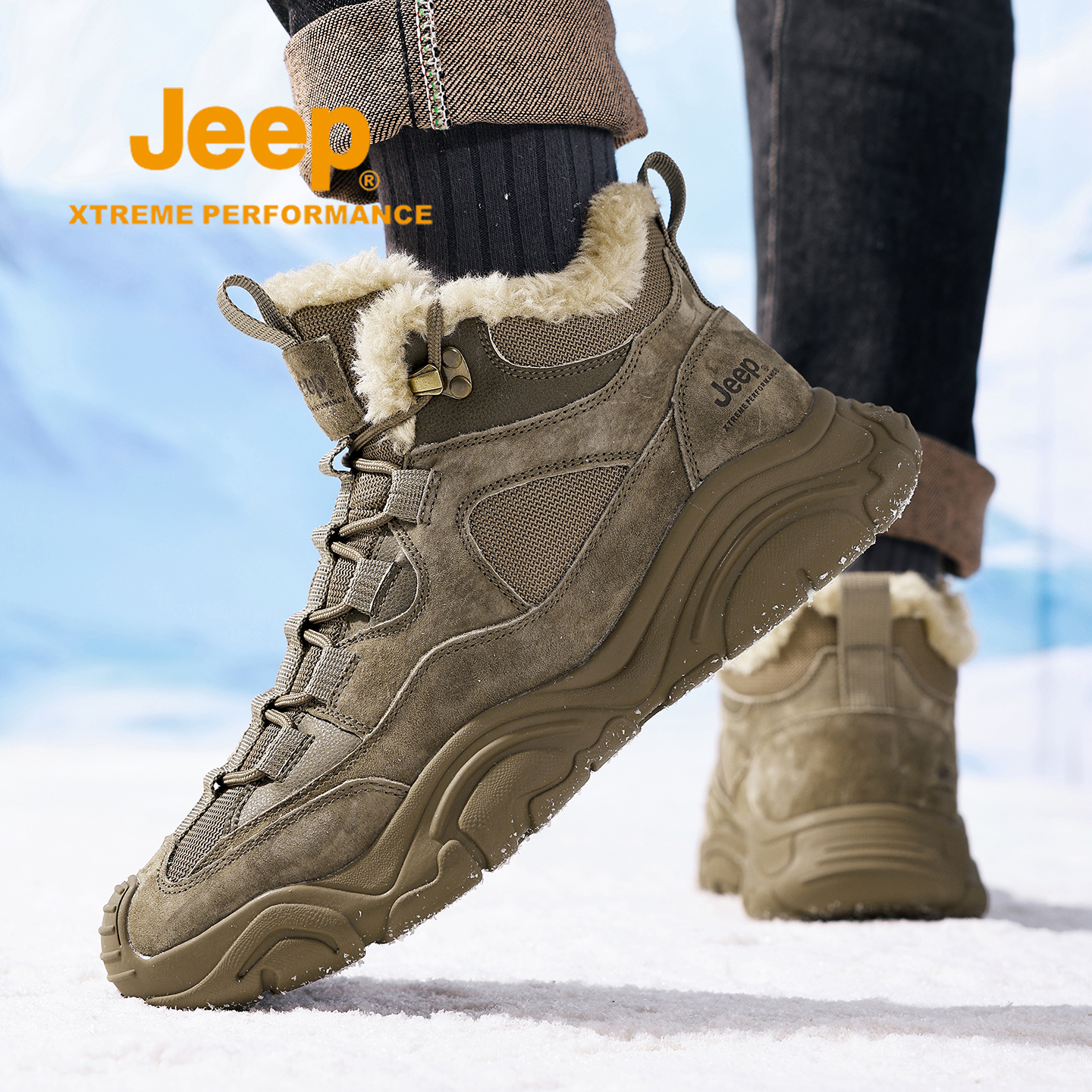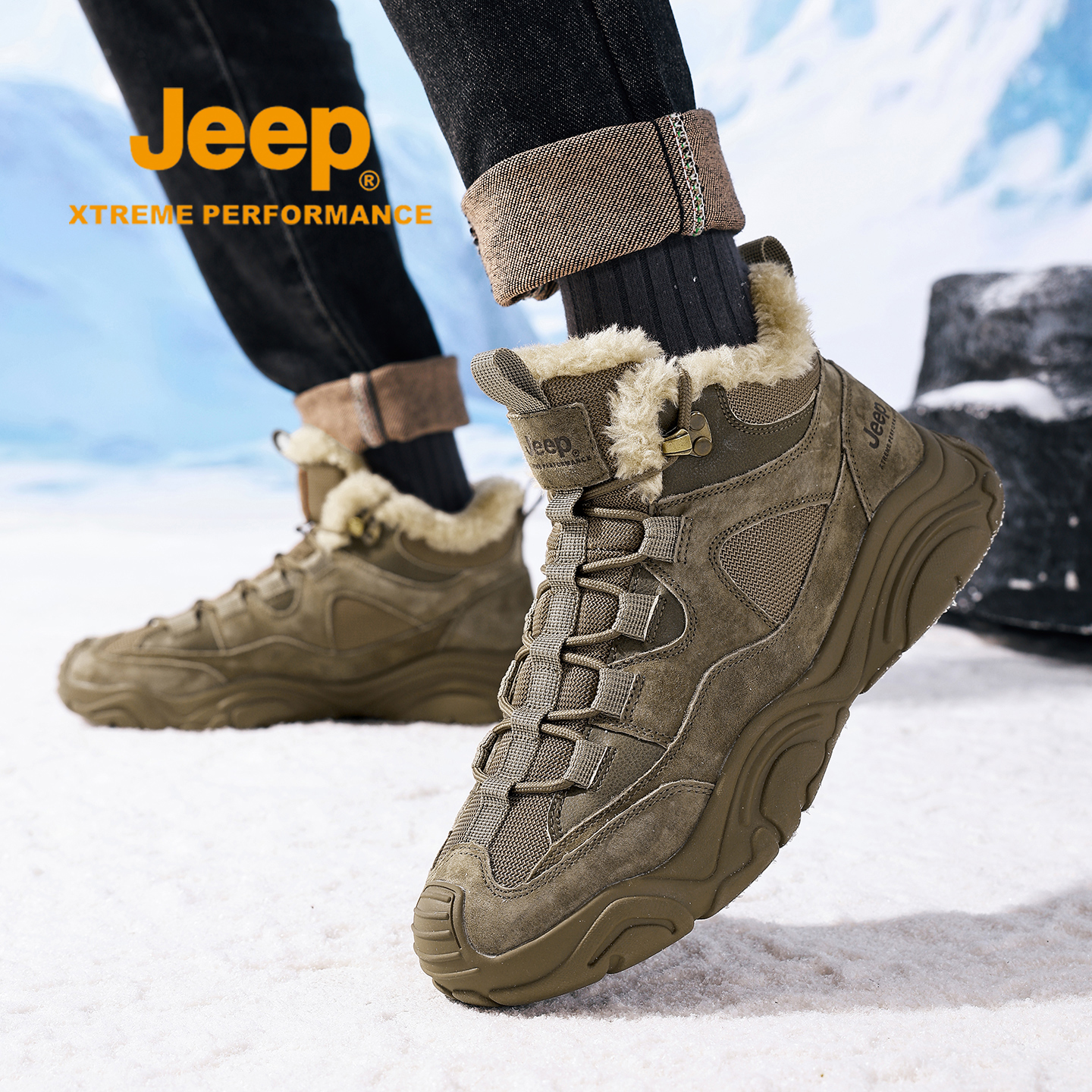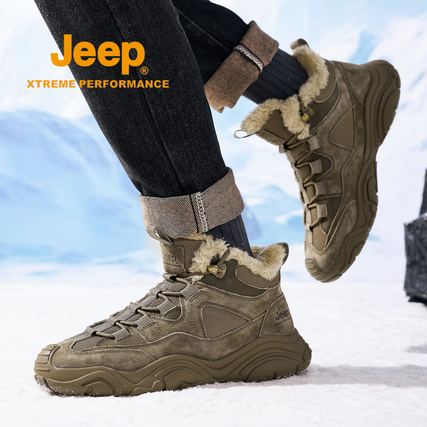 Jeep东北棉鞋男冬季户外加绒加厚保暖雪地靴男士防滑软底高帮爸爸