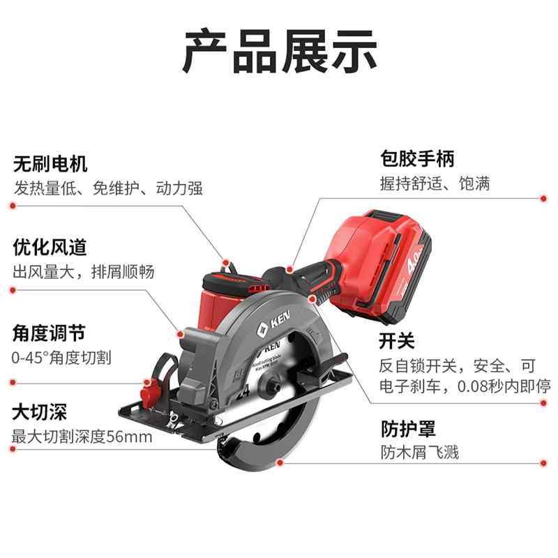 KEN锐奇无刷锂电切割电机电木工6模板手提5150寸组合扳圆锯工电锯