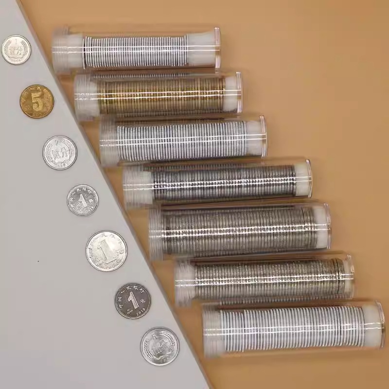 硬币收纳盒收藏纪念卷币筒125分/15角1元小圆筒50枚装硬币筒包邮