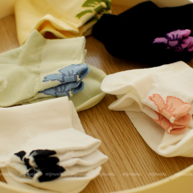 米吉诺拉 夏季小清新立体后跟蝴蝶结短袜子少女薄款透气纯棉袜