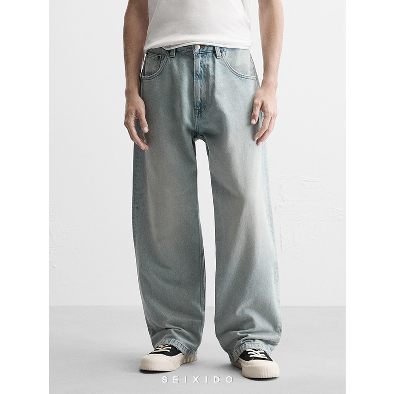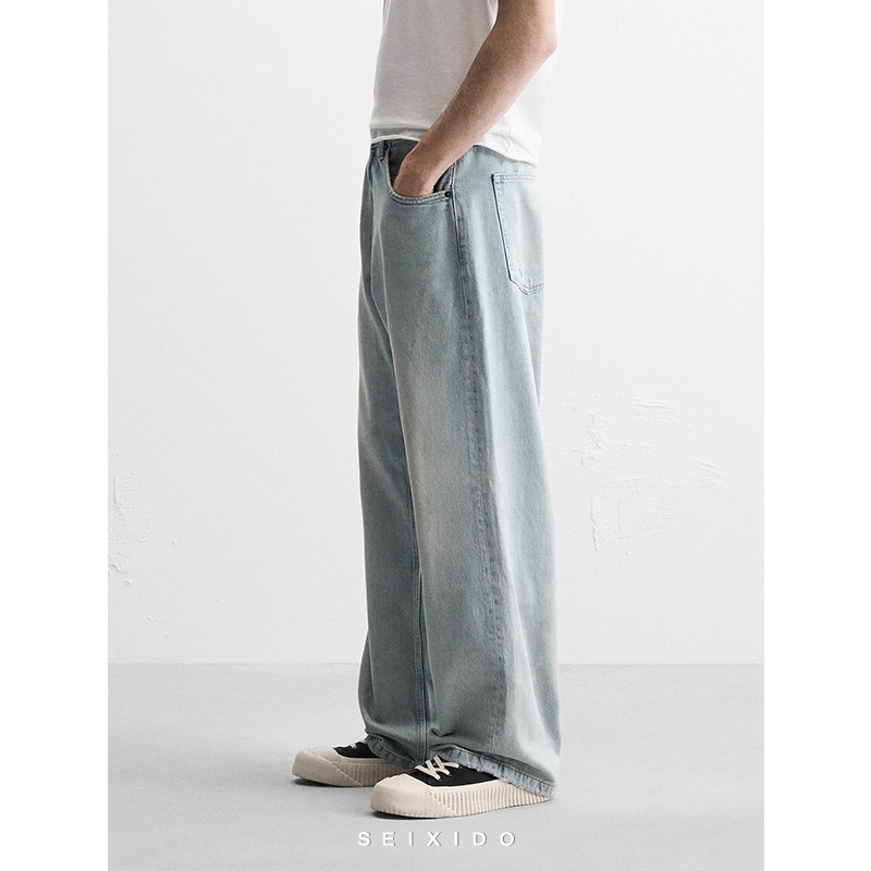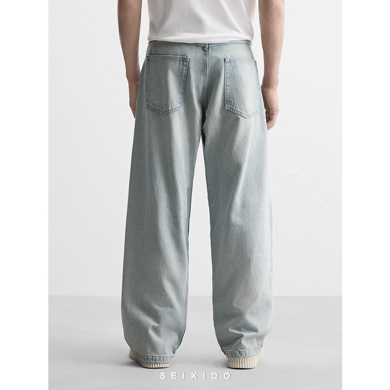 柜319!欧美简约男装多色棉质宽松水洗牛仔休闲长裤8062380直筒裤