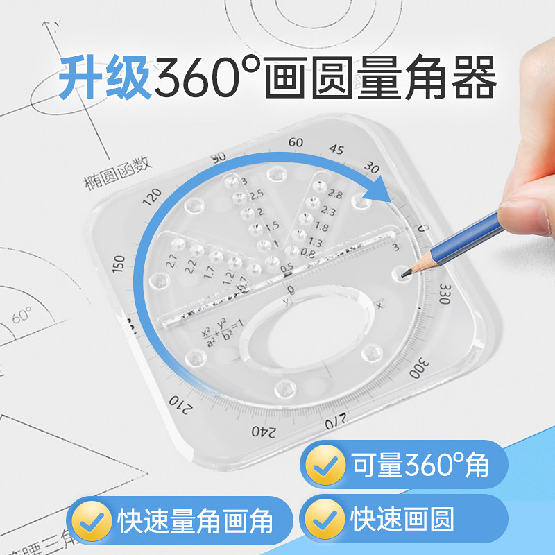 悟生函数套尺初中高中生多功能几何绘图尺直尺三角尺量角器尺子套装中学生专用文具透明高颜值绘画图形模板