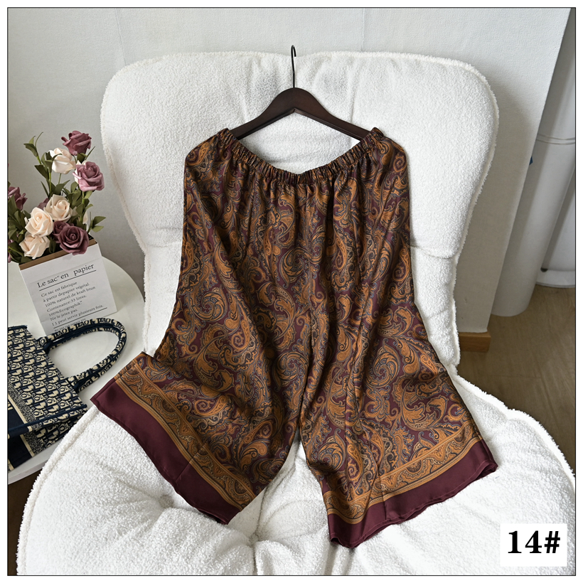 很实惠的真丝睡裤 拼接款桑蚕丝真丝七分裤女式中裤 大码家居