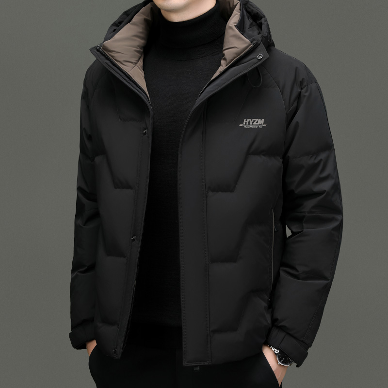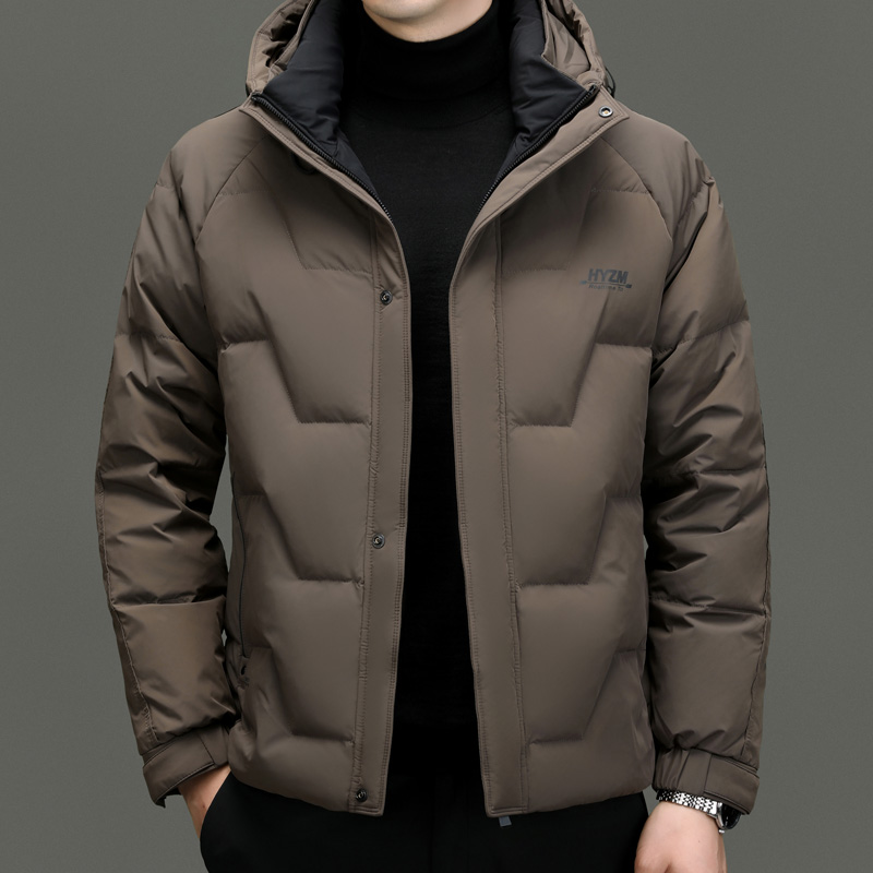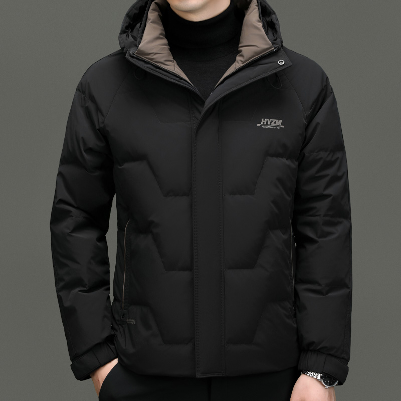 罗蒙羽绒服男士2025冬季新款加厚保暖白鸭绒连帽立领面包服外套男