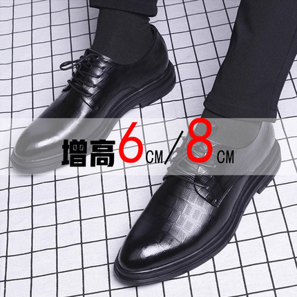 结婚皮鞋男内增高8cm春季英伦西装真皮正装新郎商务隐形增高鞋6cm