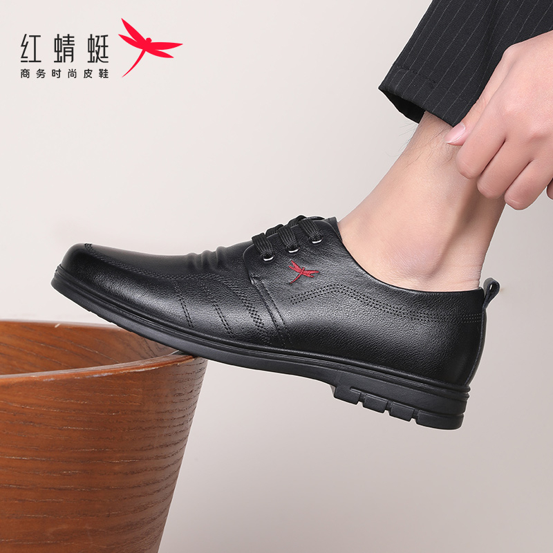 红蜻蜓男鞋秋冬正装商务皮鞋男士真皮软底头层牛皮爸爸休闲德比鞋