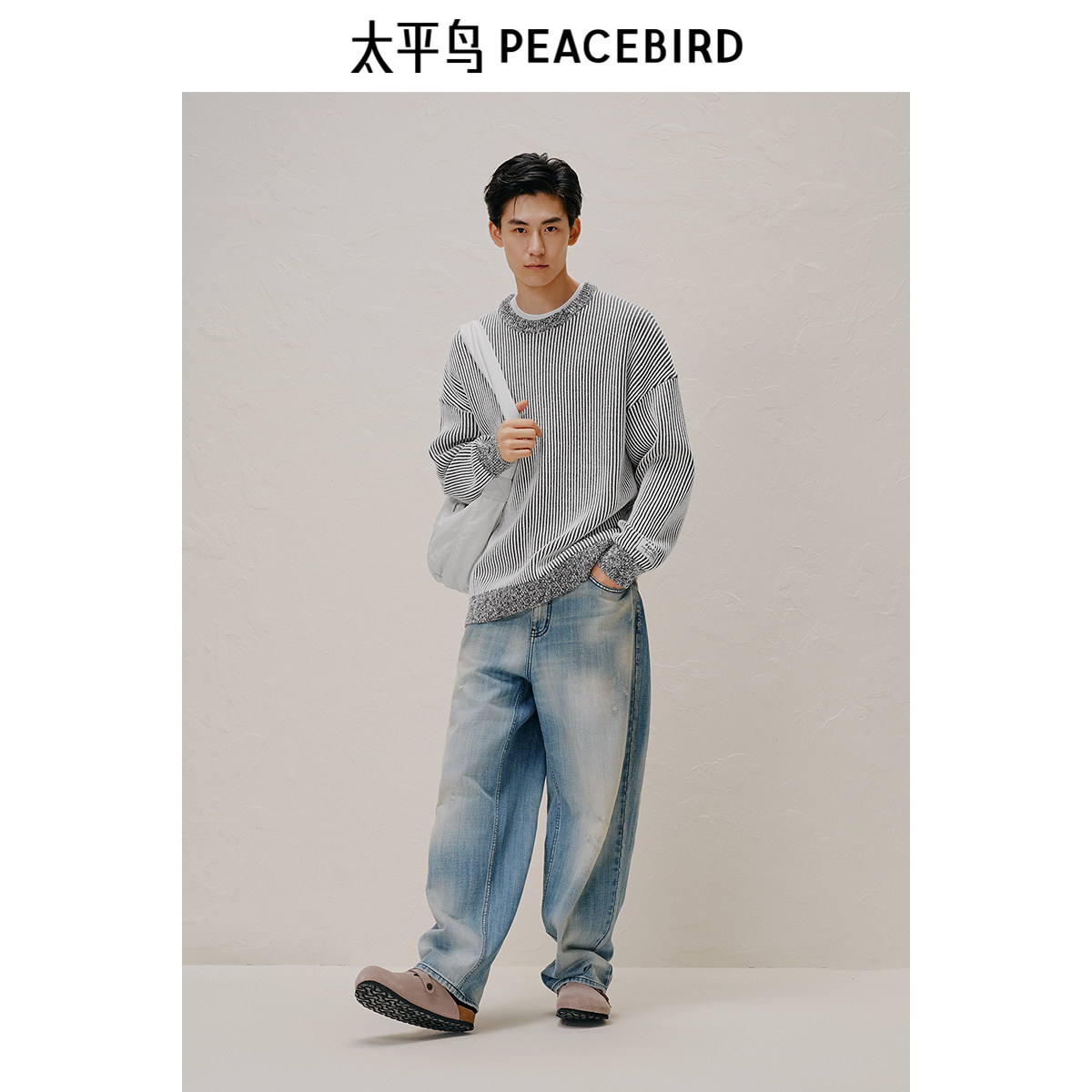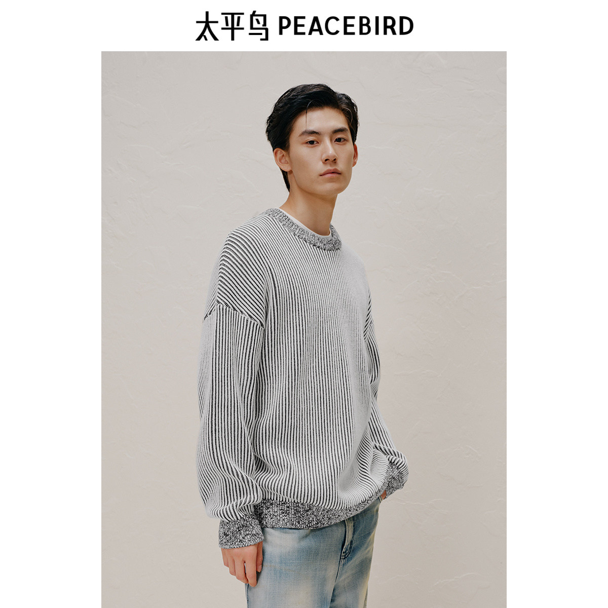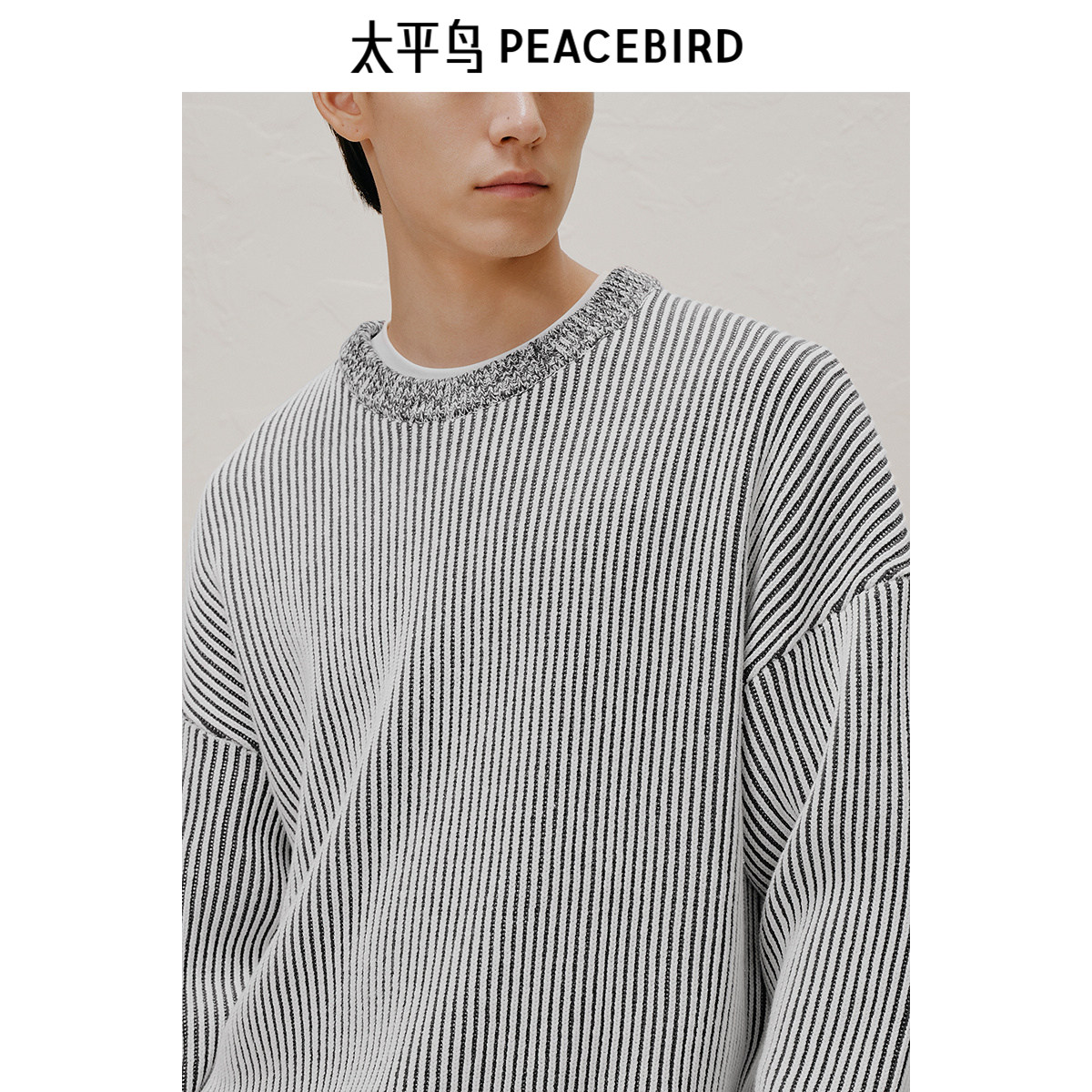 太平鸟男装 休闲毛衣坑条暗纹肌理针织衫青年圆领柔软慵懒毛衫