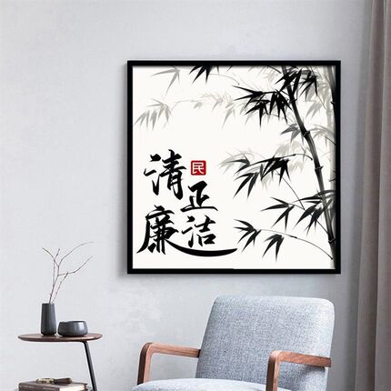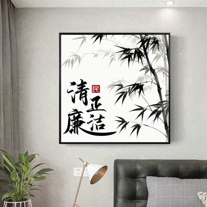 带框5D钻石画钻石贴十字绣客厅水墨竹子书法廉政文化反腐清正廉洁