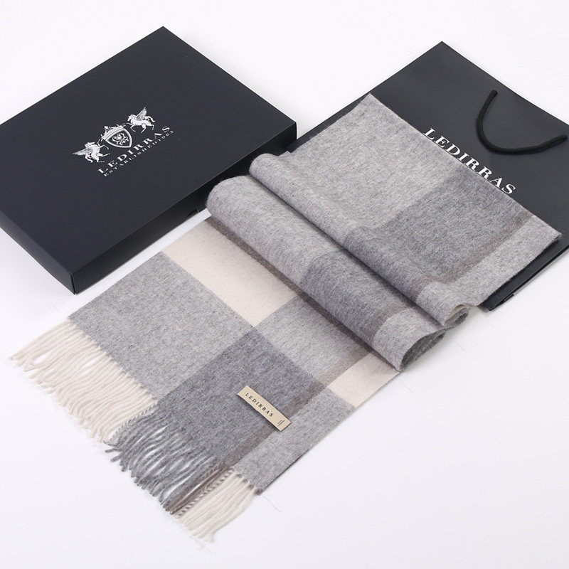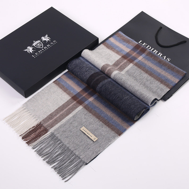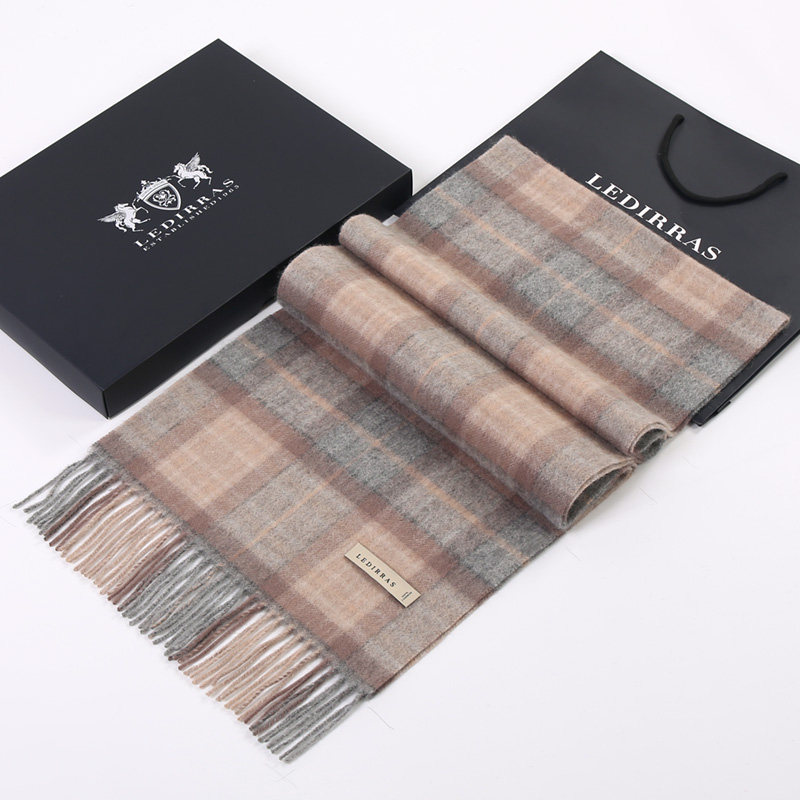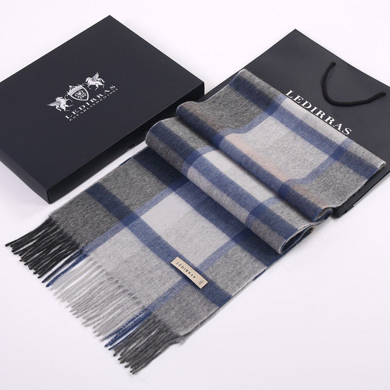 100%山羊绒男士围巾冬保暖百搭英伦格子高档礼盒装送男友生日礼物