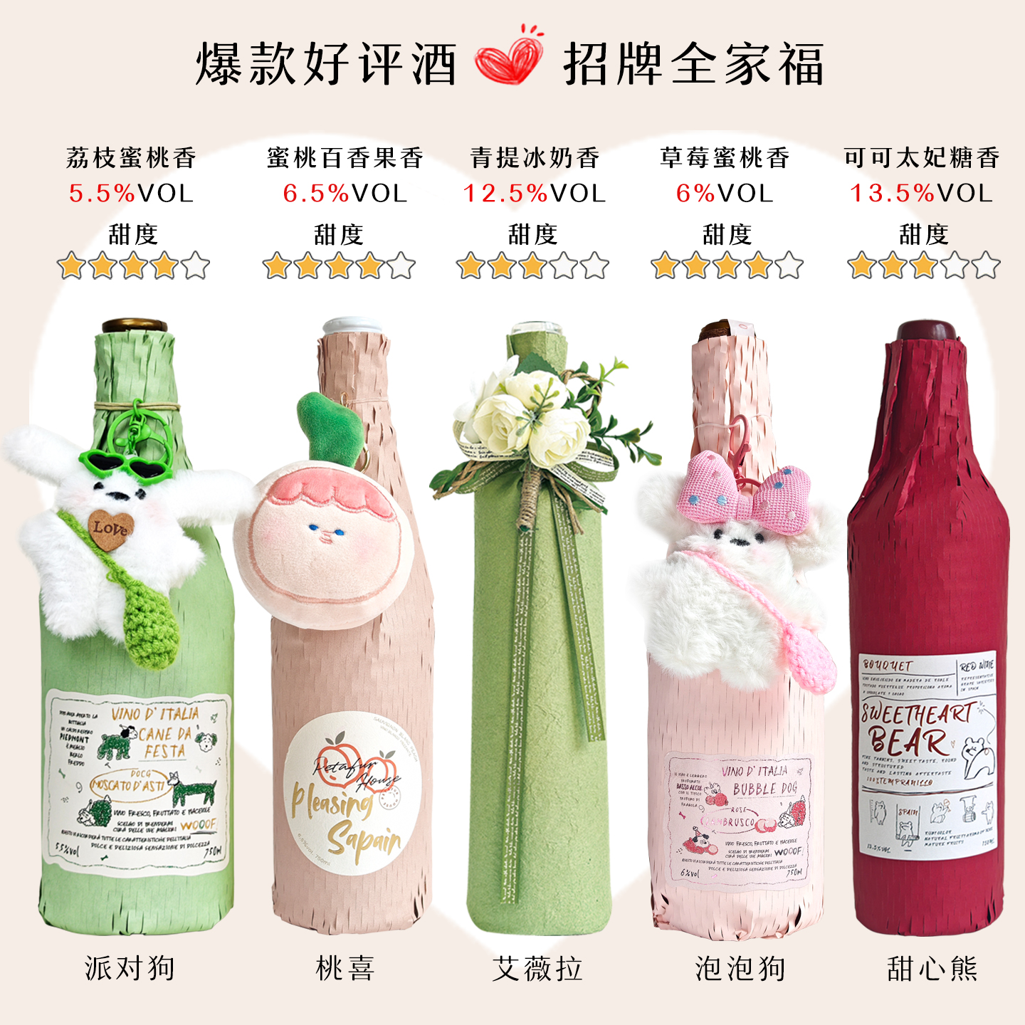 荔枝莫斯卡托阿斯蒂甜白起泡葡萄酒低度气泡微醺果酒香槟女生礼物