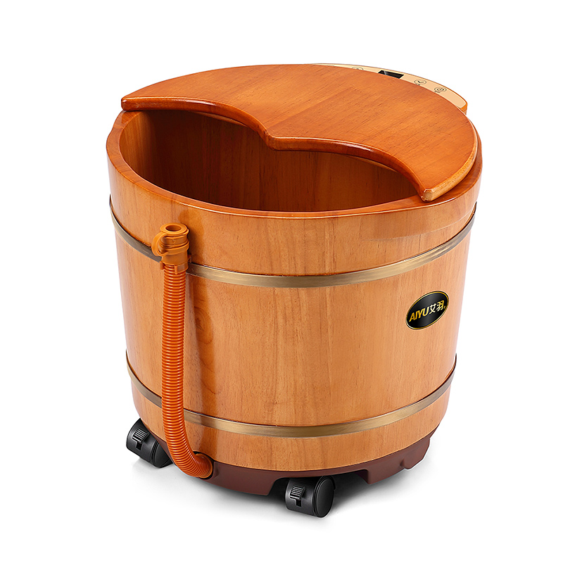 艾羽泡脚桶全自动足浴盆加热恒温洗脚桶电动按摩足疗机家用橡木桶