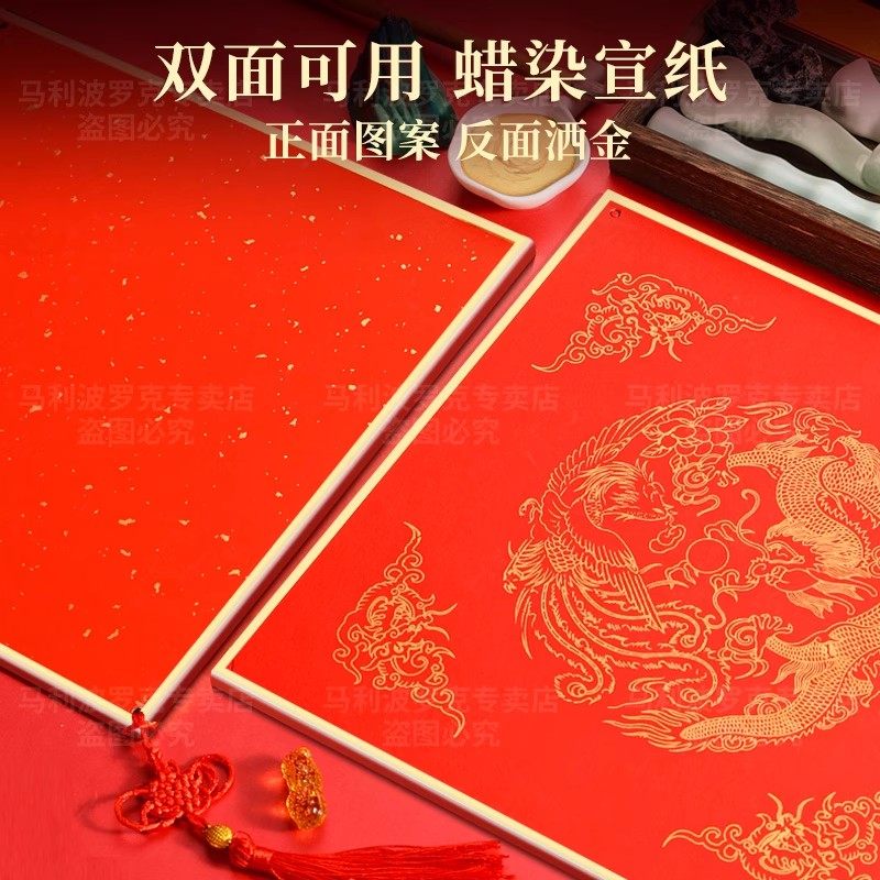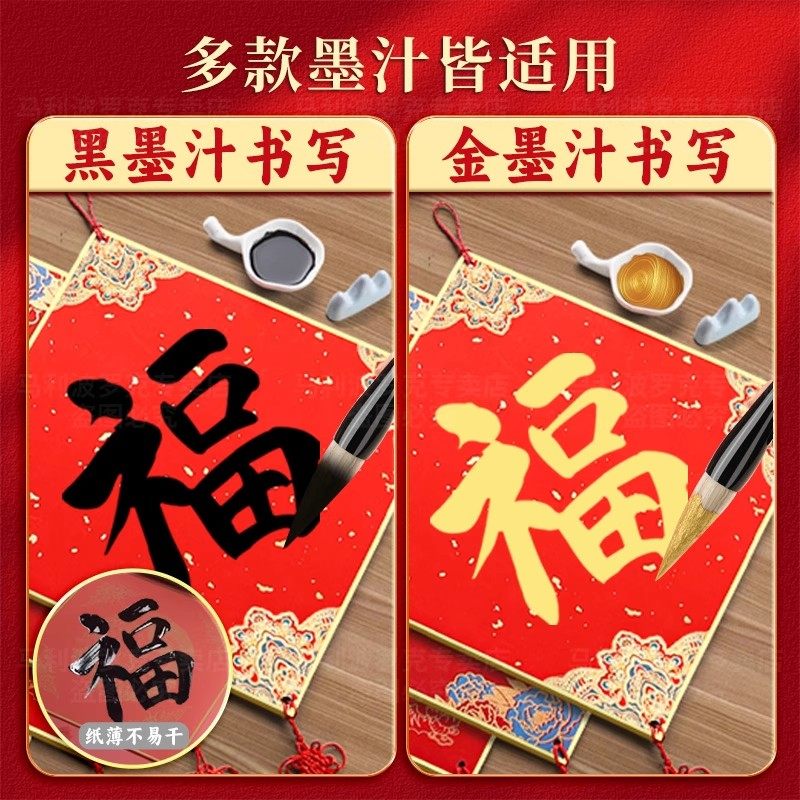 马利福字斗方2026新年手写福字的专用纸烫金蜡染宣纸书法纸空白春联万年红对联硬卡加厚红纸洒金灯笼中国结