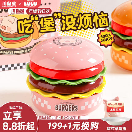 川岛屋&lulu猪联名 汉堡包餐具套装盘子餐盘碗碟套组生日乔迁礼物