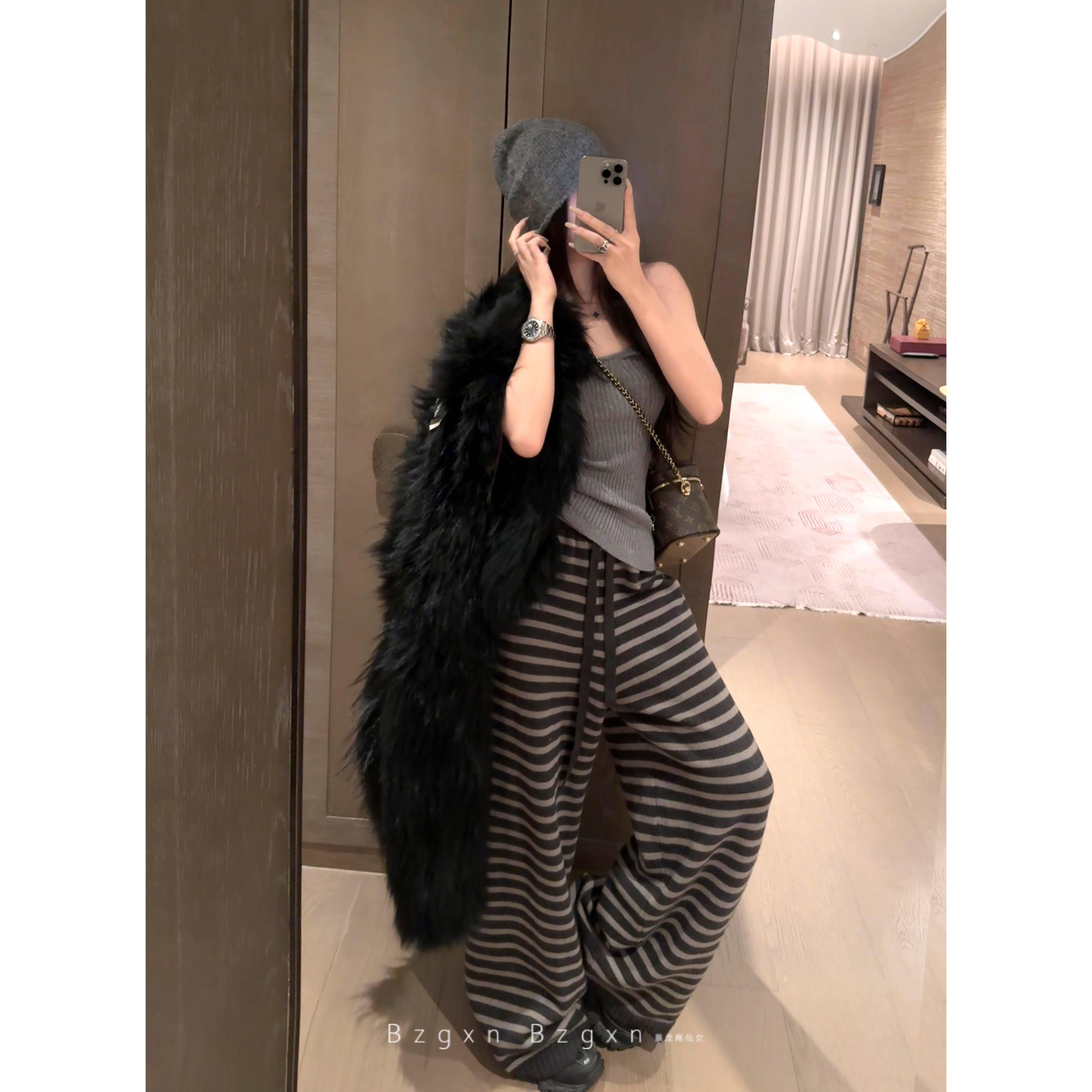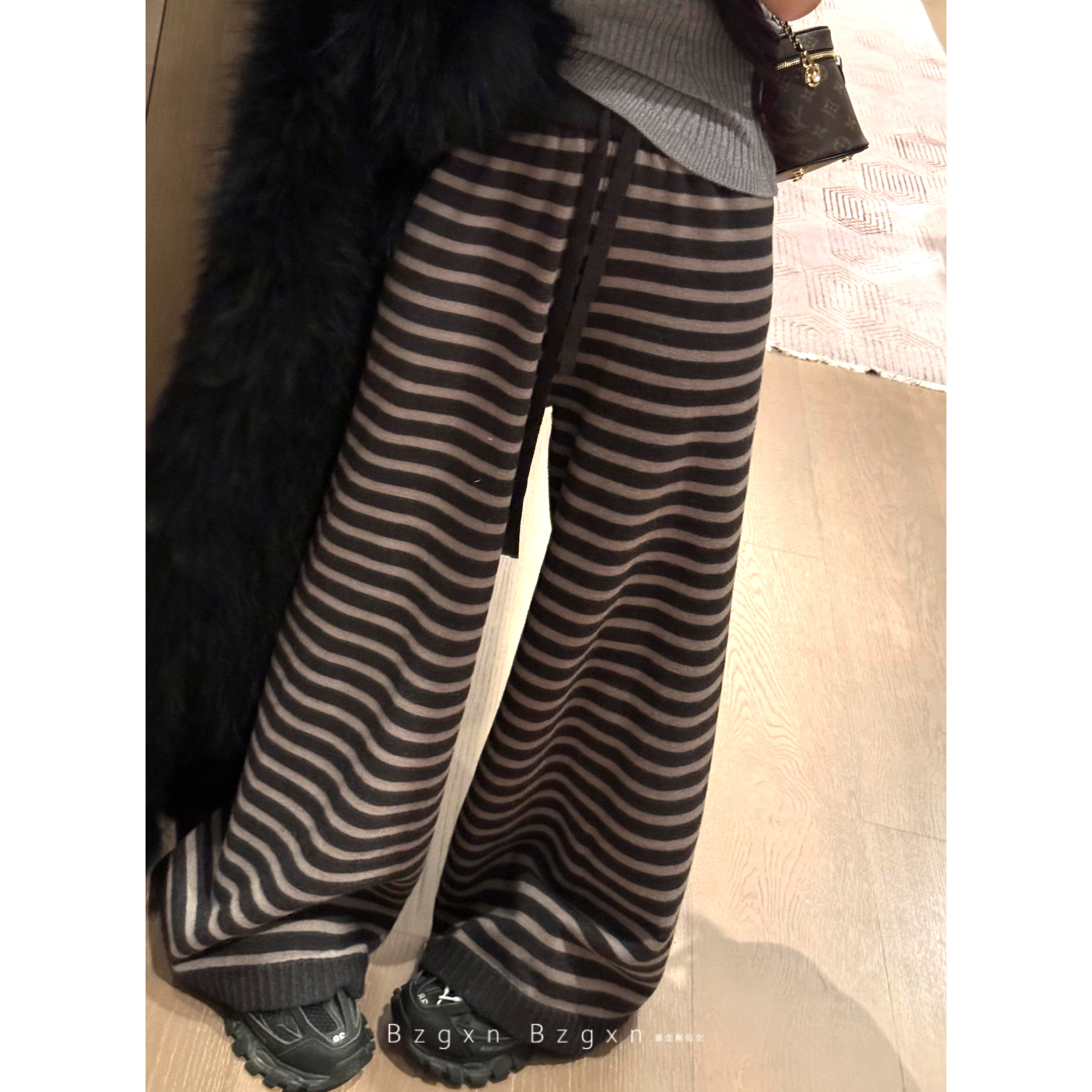 高个子加长180条纹针织阔腿裤女秋冬高腰垂感宽松显瘦休闲拖地裤