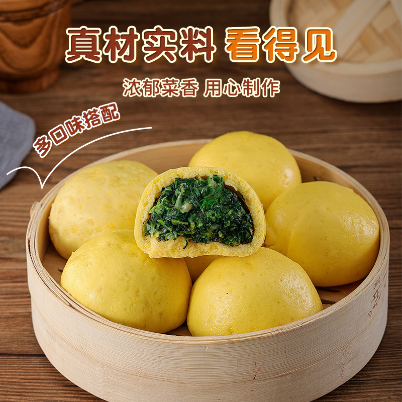 锦溪麦田荠菜菜团子素包子粗粮杂粮馒头早餐半成品加热即食玉米面
