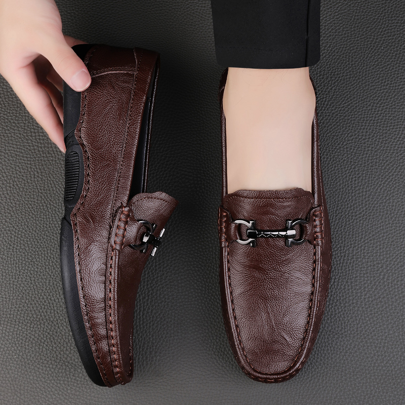 真皮男鞋2025新款秋季百搭商务英伦风休闲皮鞋一脚蹬懒人豆豆潮鞋