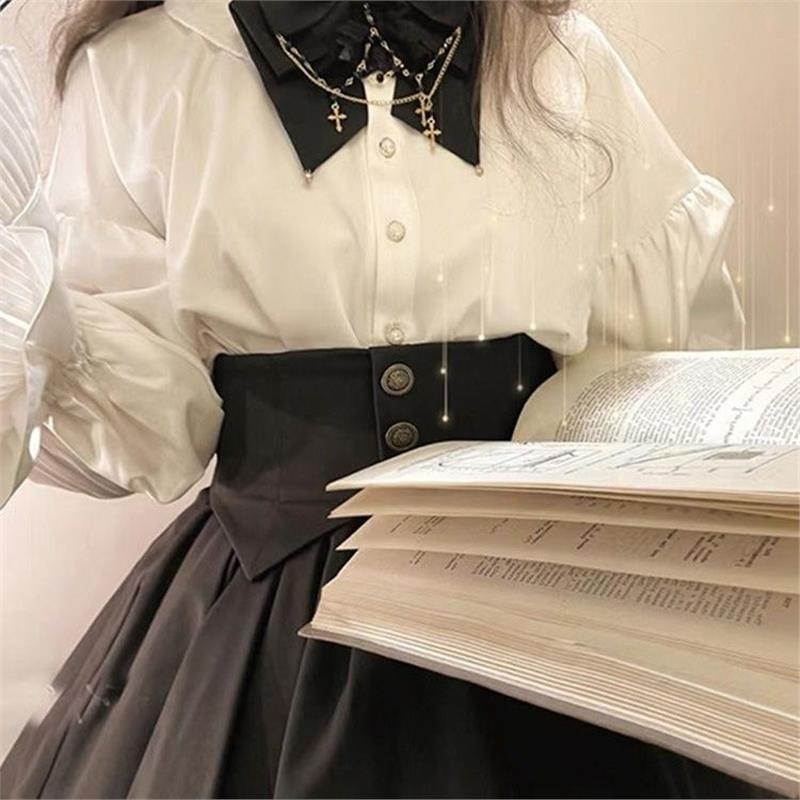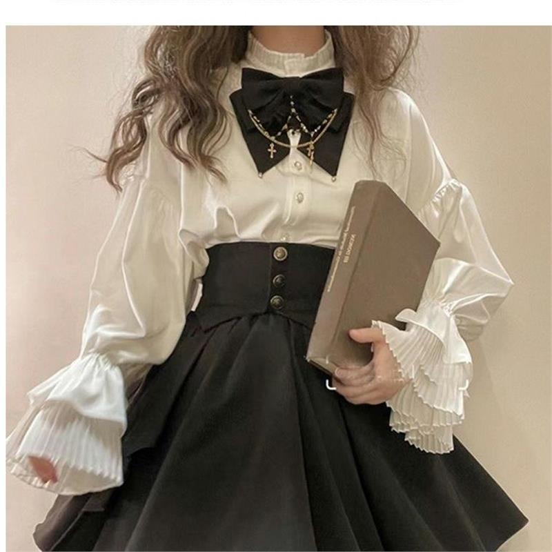 哥特风洛丽塔灯笼袖连衣裙2025新款秋冬妹装纯棉半裙哥特风裙子