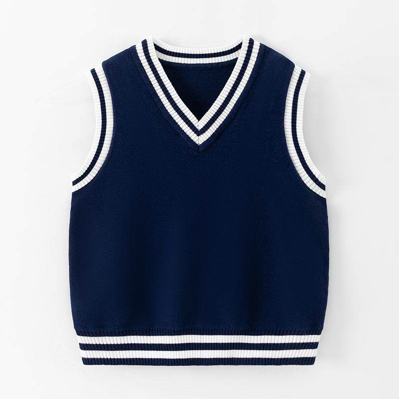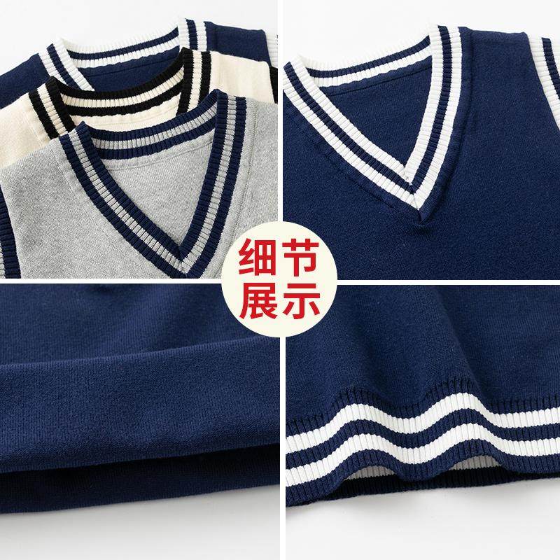 儿童针织马甲套头背心男女童秋冬款中大童V领校服上衣学院风毛衣
