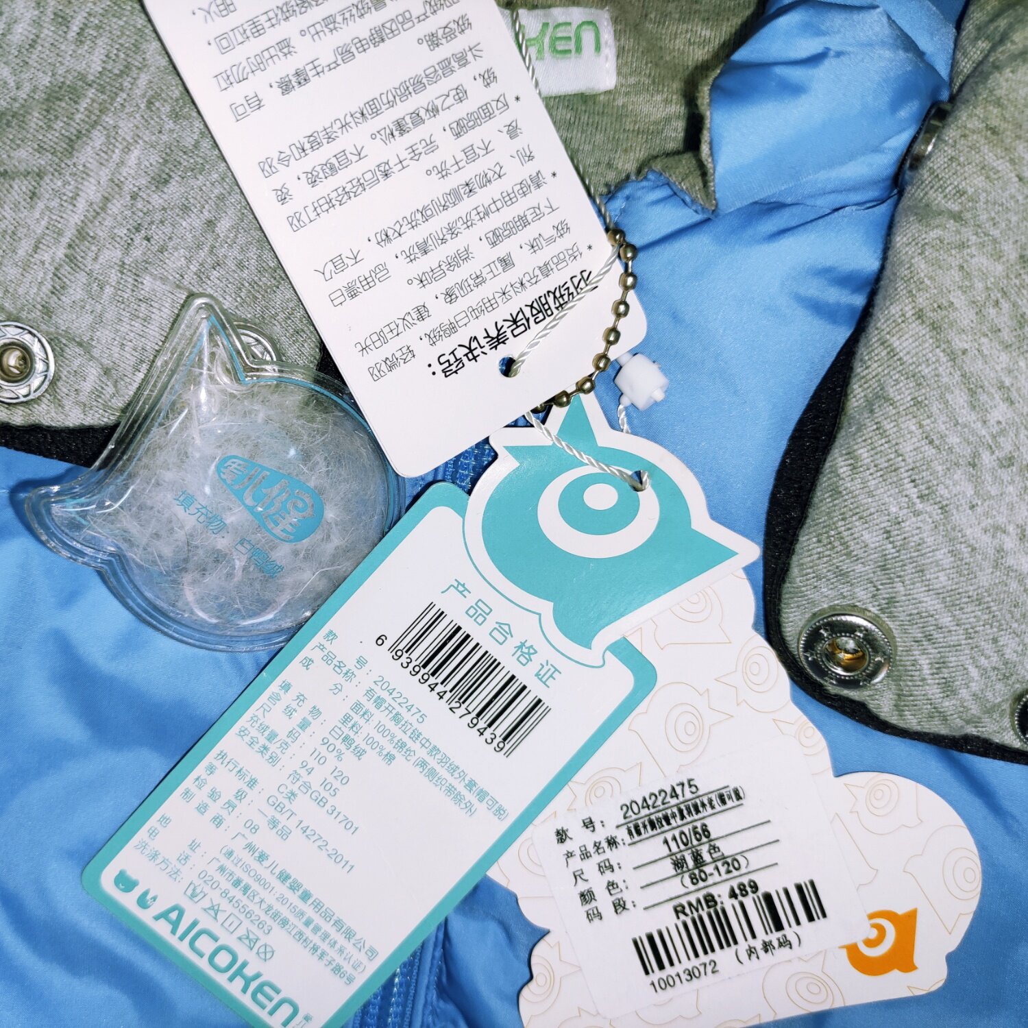 3.9折1爱儿健品牌童装20422475冬有帽开胸拉链中长款羽绒服帽可脱
