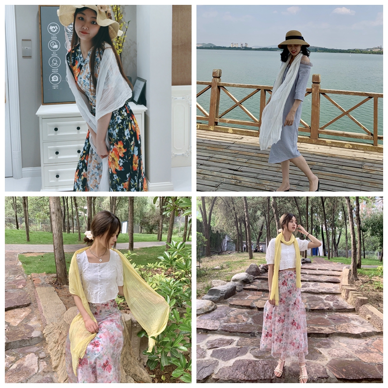 丝巾小长条夏季薄款防晒护颈小围脖细窄棉麻围巾纯色亚麻长款装饰