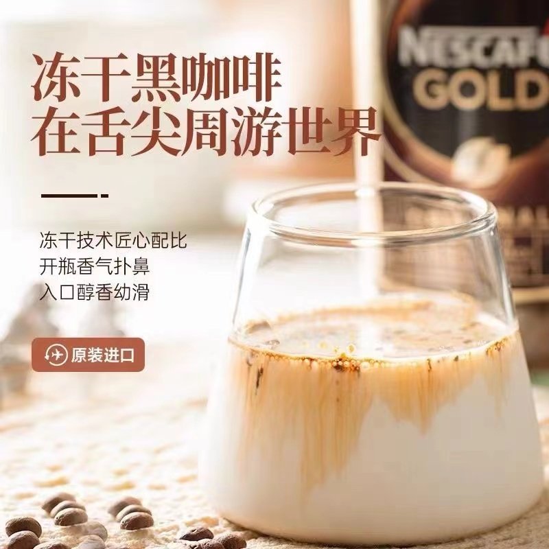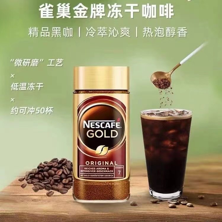 瑞士进口雀巢金牌速溶纯黑咖啡200g粉冻干即溶美式无蔗糖原味罐装