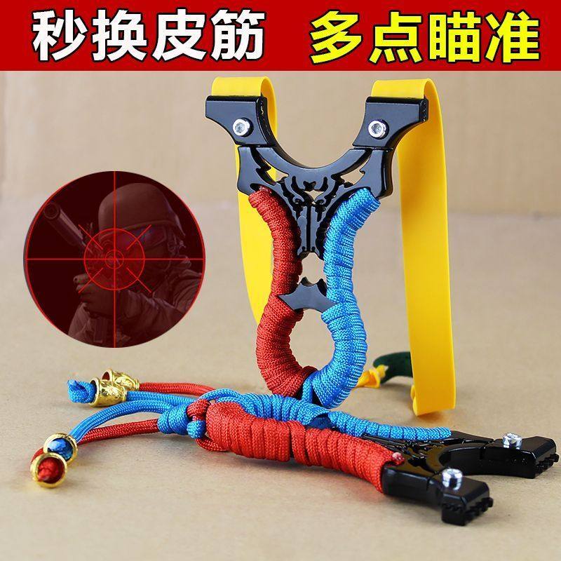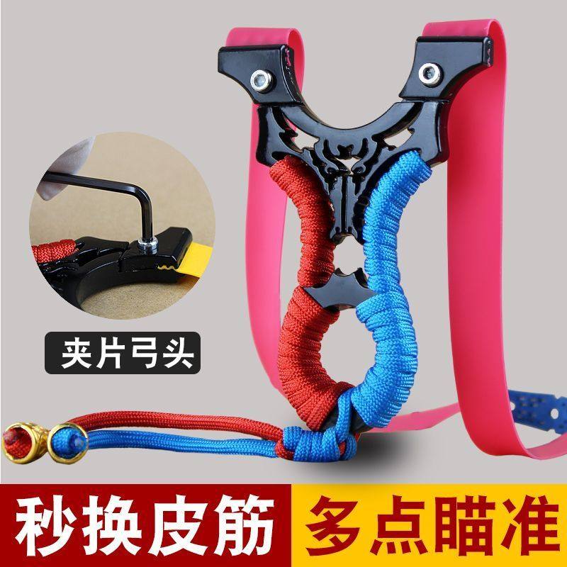 弹弓户外非不锈钢金属弹工架扁皮筋组金刚狼弹弓架免绑快压瞄打