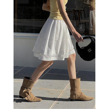 【都市天鹅湖】韩系复古蕾丝花边半身裙女夏温柔白色A字蛋糕短裙