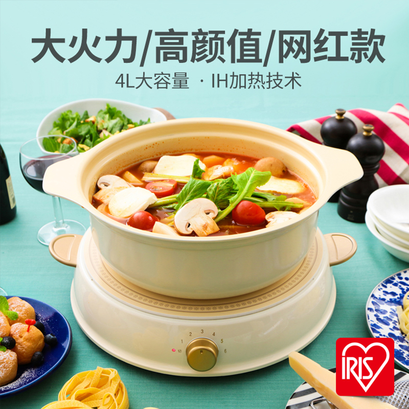 日本iris爱丽思电磁炉日式料理家用火锅小型汤锅陶瓷不粘锅炒菜锅