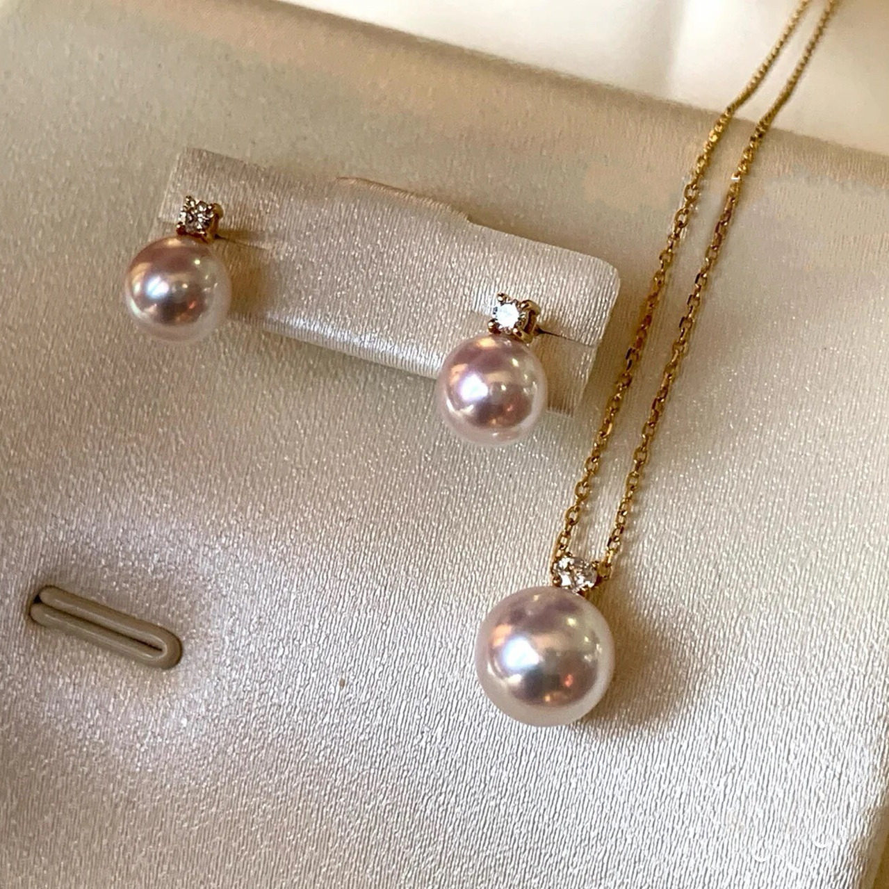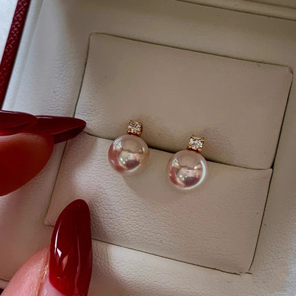 天然akoya海水珍珠耳钉 18K金王妃款耳钉 正圆 极光 无暇