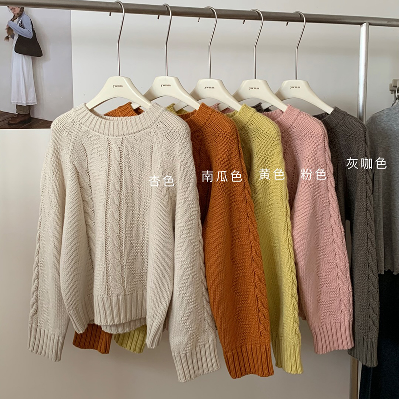 话里甜美气质麻花套头毛衣2025秋季新款韩版休闲宽松慵懒风针织衫