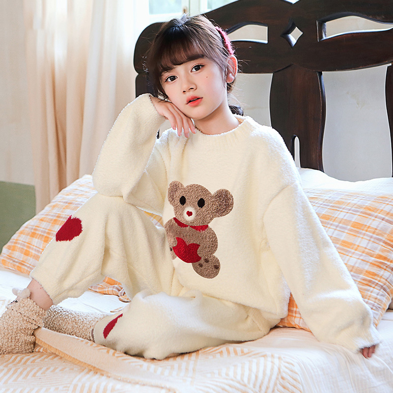 女童珊瑚绒睡衣保暖秋装套装中大童儿童冬装洋气时髦法兰绒家居服
