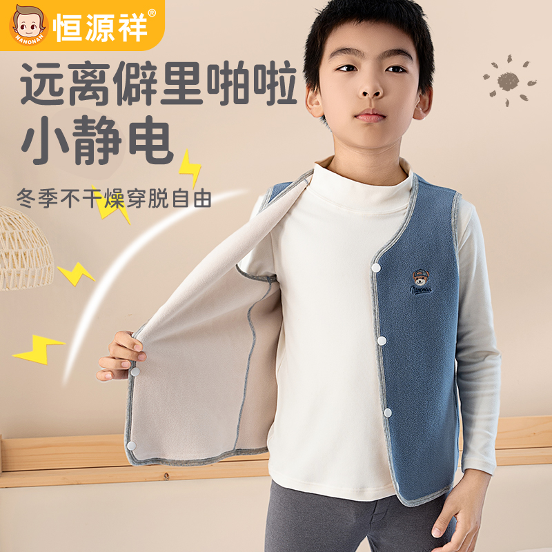 恒源祥儿童马甲加厚摇粒绒男童加绒保暖背心可外穿中大童秋冬季