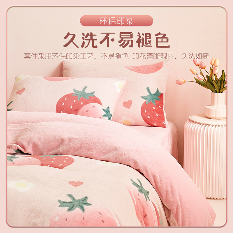 梦洁家纺珊瑚绒三四件套牛奶绒双面绒床单被套加绒法兰绒床上用品