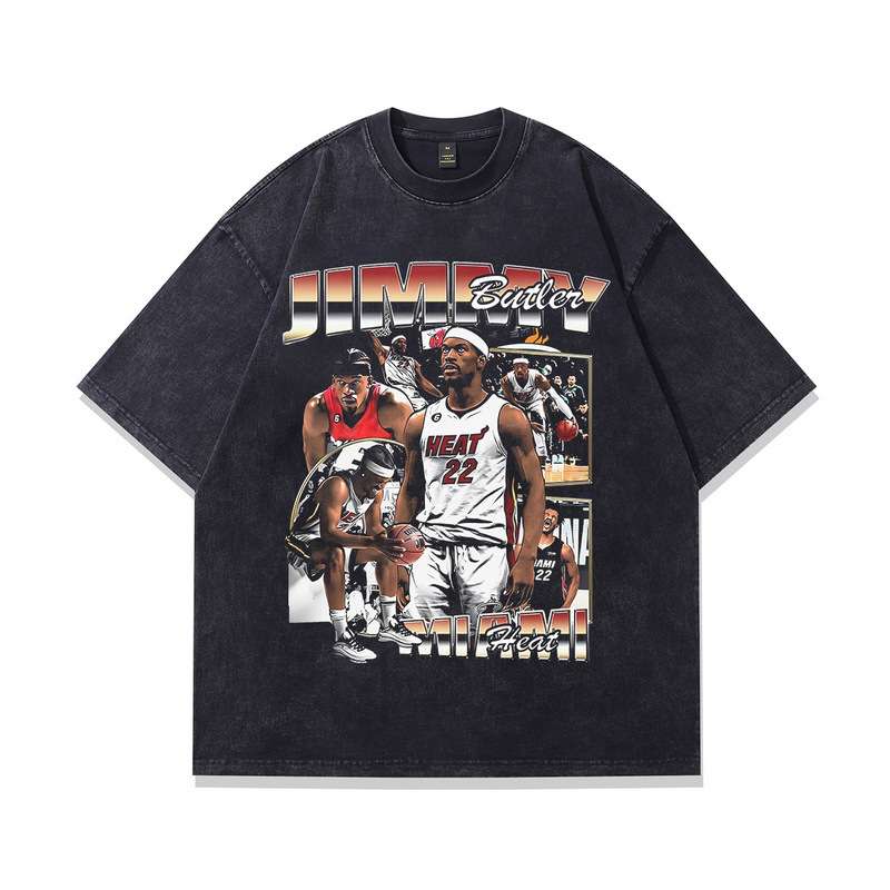 TKPA跨境男装短袖t恤美式复古球星直喷印花oversize大版型纯棉t恤