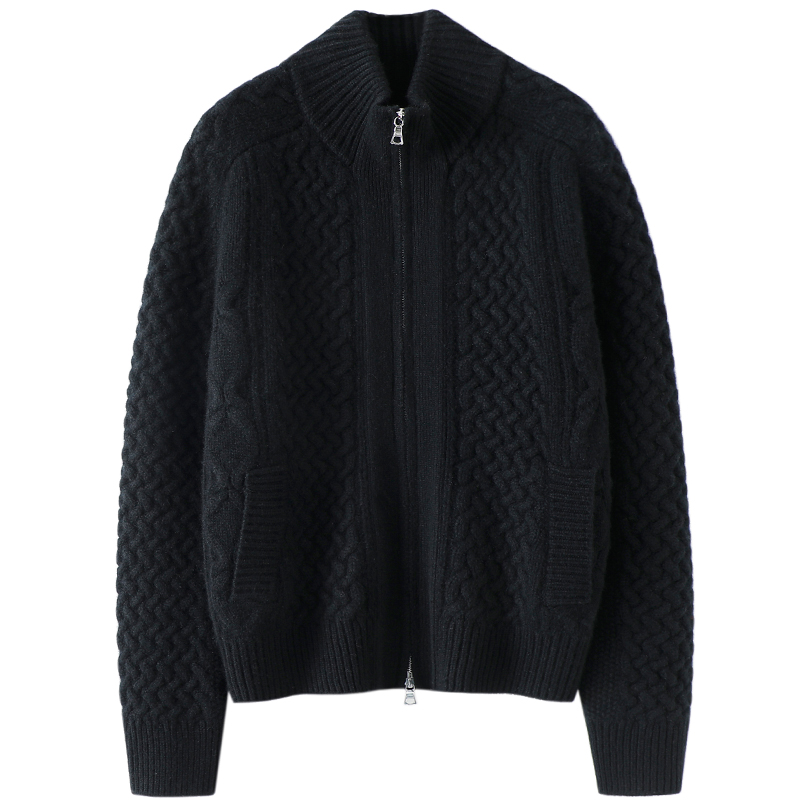 启超满满工匠感!重磅加厚羊绒拉链开衫女纯羊绒毛衣针织外套上衣