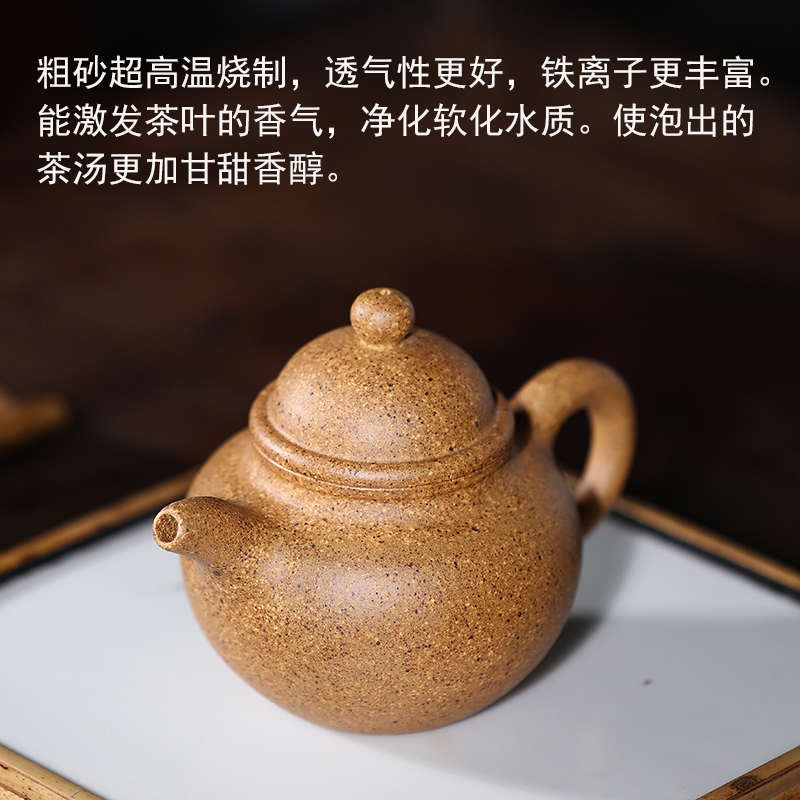 宜兴紫砂壶全纯手工名家正宗粗砂黄金段泥掇球家用泡茶壶茶具套装