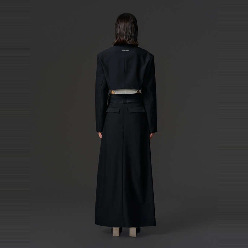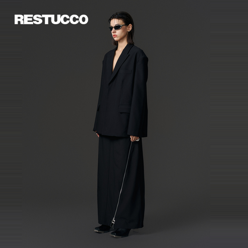 [设计师品牌] RESTUCCO 高开叉半身裙女新款黑色小众设计感穿搭