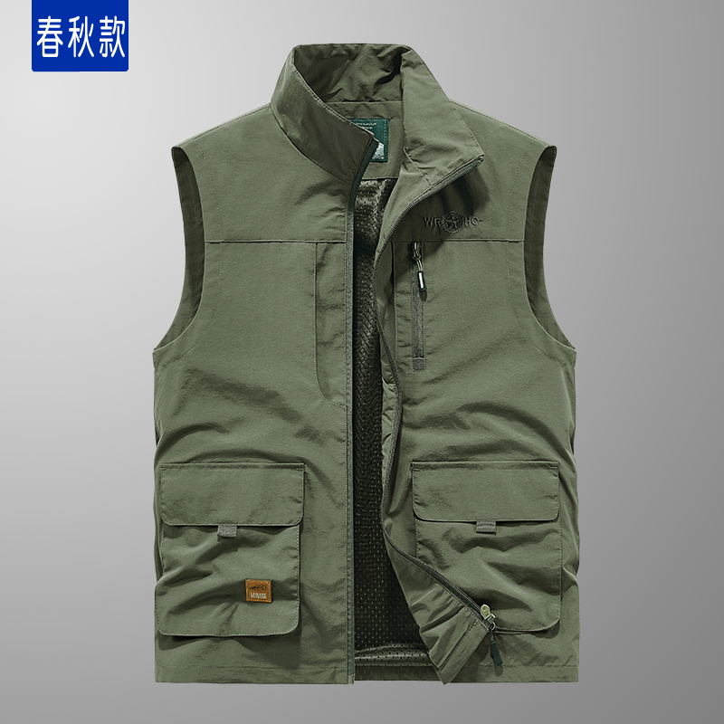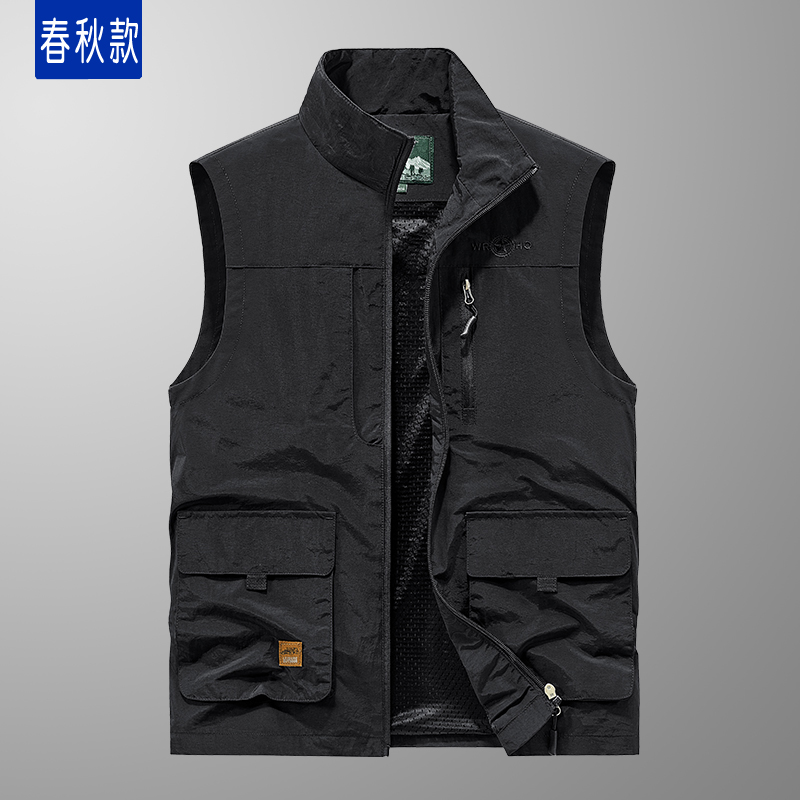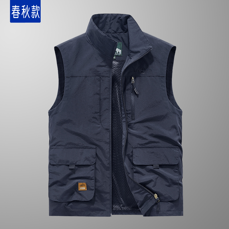 春秋季爸爸装中老年男士马甲多口袋钓鱼背心坎肩薄款摄影外套爷爷