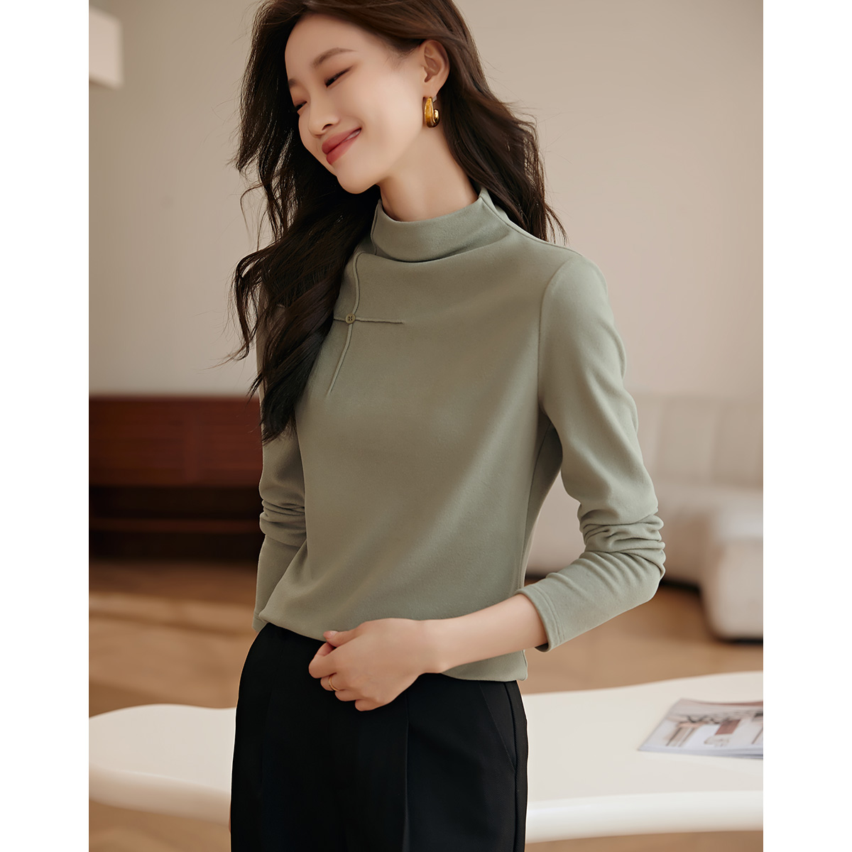 沫晗依美半高领设计感明线打底衫2025年冬季新款女百搭长袖打底衫