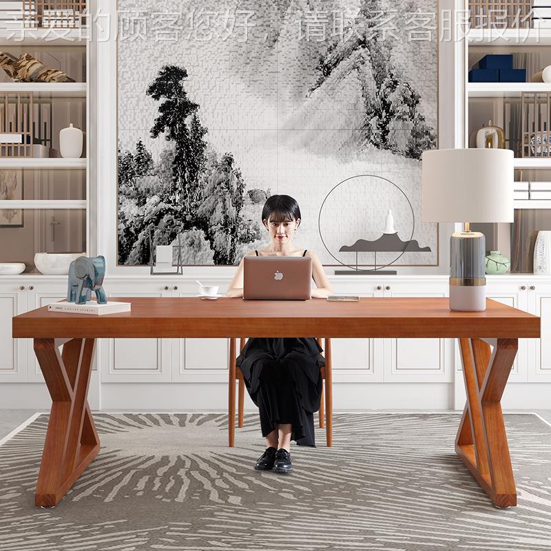 家新中式家新中式全实木 电脑桌老板桌台式用人办公桌 儿童写字双
