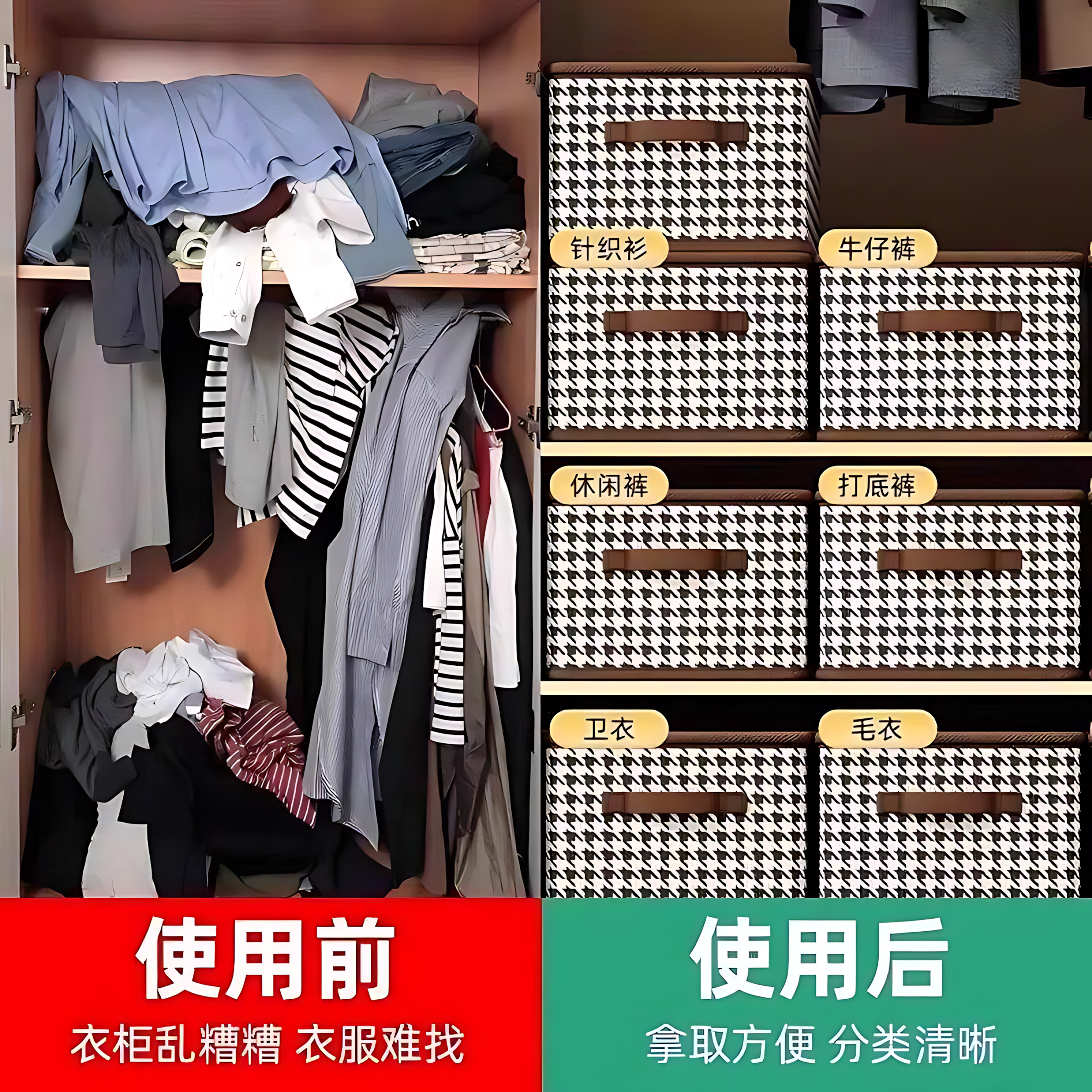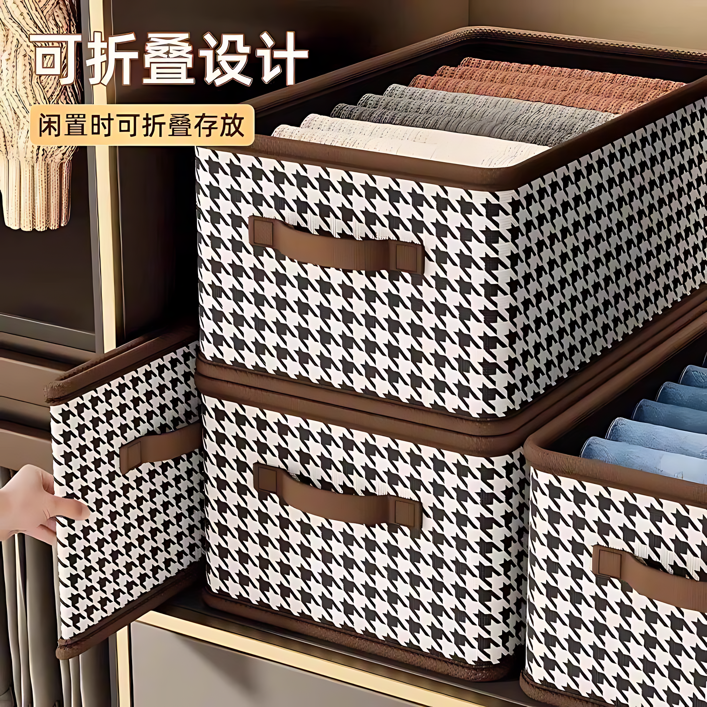 衣服收纳箱千鸟格家用衣柜分层整理收纳神器放衣物布艺折叠收纳筐
