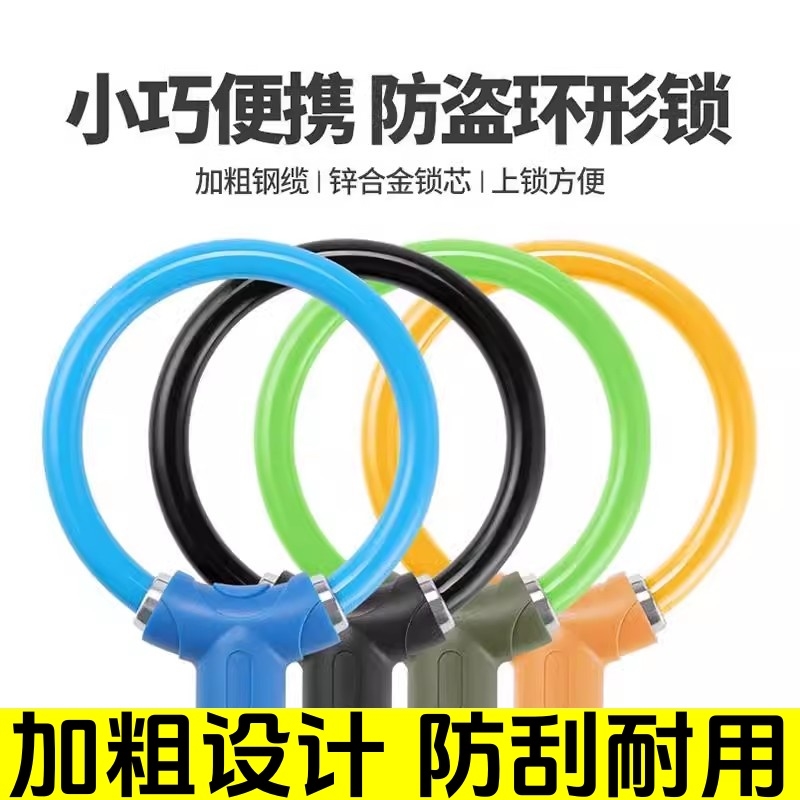 适配迪卡侬儿童车简约环形锁防盗钢缆锁四色户外便携钥匙锁配件